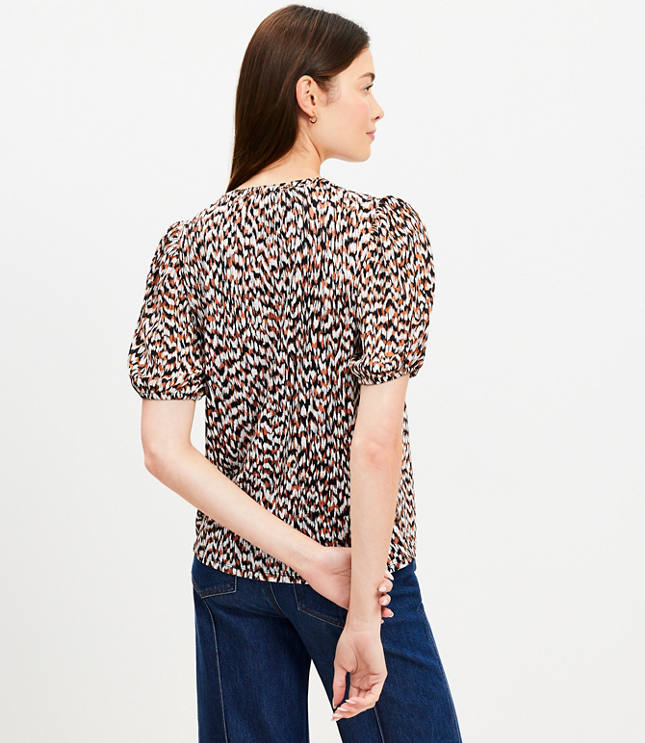 Leopard Print Angled Yoke Button Mixed Media Top Very well made.