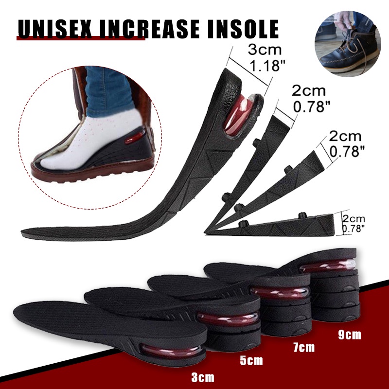 Unisex Increase Insole 1 4 Layer 9 CM Height Heel Lift Shoe Air Cushion Height increasing Insole Pad Taller 1 pair Shopee Malaysia Very well made.