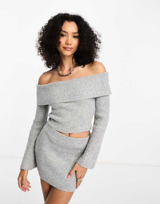 Bailey Rose off shoulder crop jumper in soft grey knit co ord ASOS Very well made.