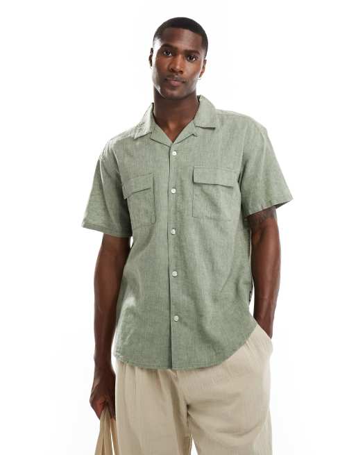 ONLY SONS Camicia con collo a rever in lino kaki con tasca ASOS Very well made.