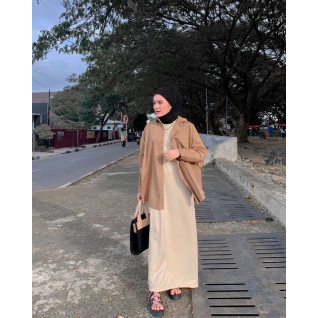 Jual Satu set OOTD hijab 2 in 1 Outer Kemeja Long Dress Inner Span Shopee Indonesia Very well made.