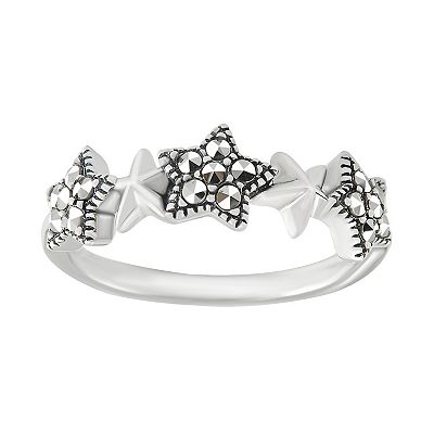 Lavish by TJM Sterling Silver Marcasite Cubic Zirconia Trio Star Ring Women s Size 7 Very well made.
