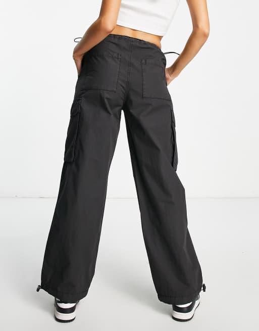 Stradivarius STR Pantaloni parachute cargo neri a vita alta Very well made.