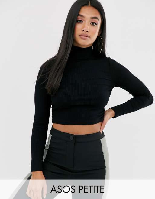 ASOS DESIGN Petite turtle neck long sleeve rib crop top in black Very well made.