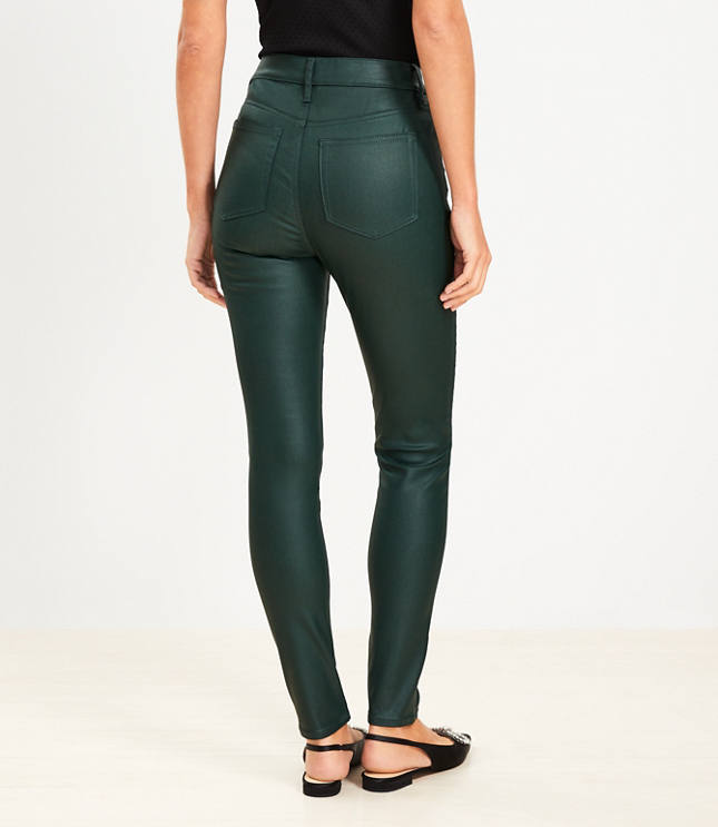 Petite Coated High Rise Skinny Jeans in Green Very well made.