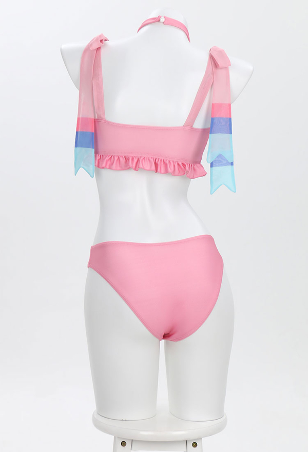 PM Derivative Swimsuit Kawaii Pink Ruffle Bikini Set Lace up Top and Low Waist Shorts Two Piece Bathing Suit Swimwear Top Quality Swimwear for Sale Very well made.