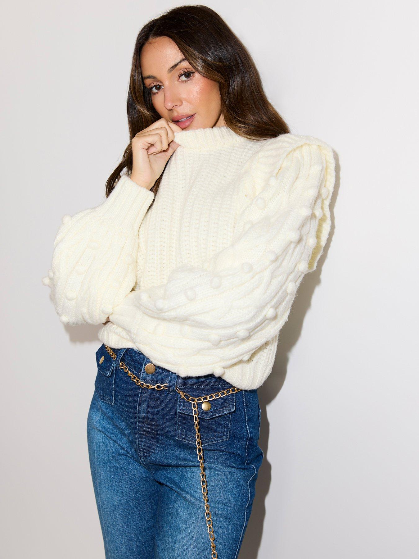Michelle Keegan Chunky Knitted Bobble Sleeve Jumper Cream Very Ireland Very well made.