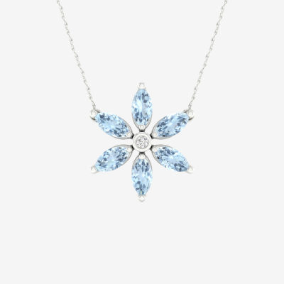 Womens Diamond Accent Genuine Blue Aquamarine Sterling Silver Flower Pendant Necklace Very well made.