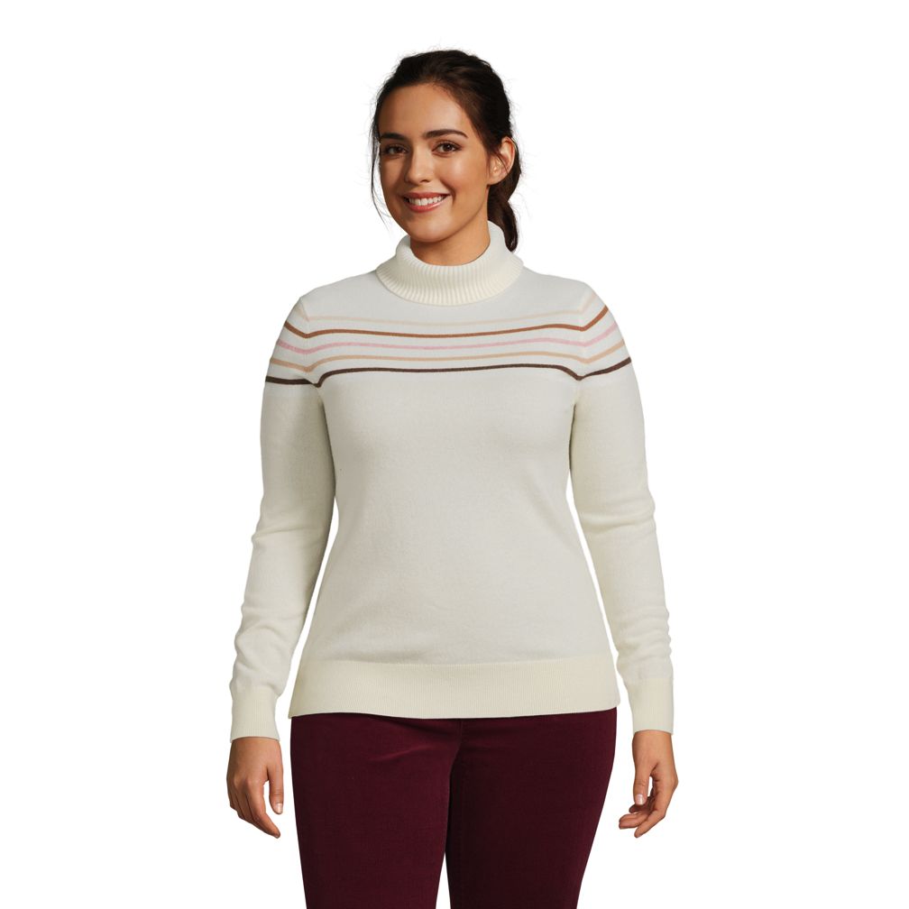 Women s Plus Size Cashmere Turtleneck Sweater Colorblock Lands End Very well made.