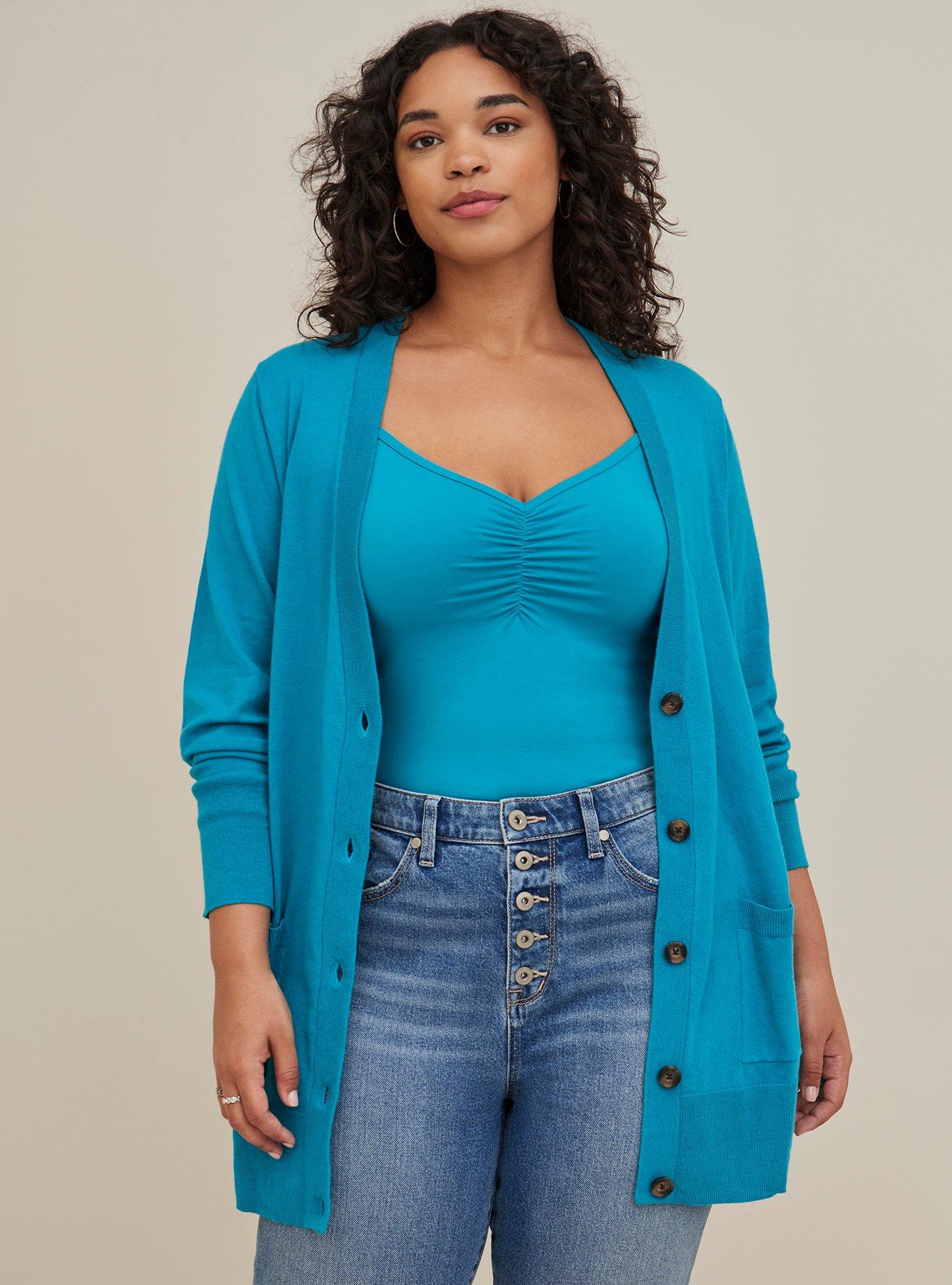 Plus Size Boyfriend Cardigan Cotton Teal Blue Torrid Very well made.