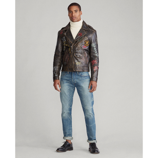 Leather Graphic Biker Jacket Very well made.