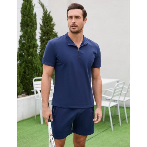 Men s Polo Shirt Short Sleeve Textured Button Down Knit Polo Shirts Parallel Very well made.
