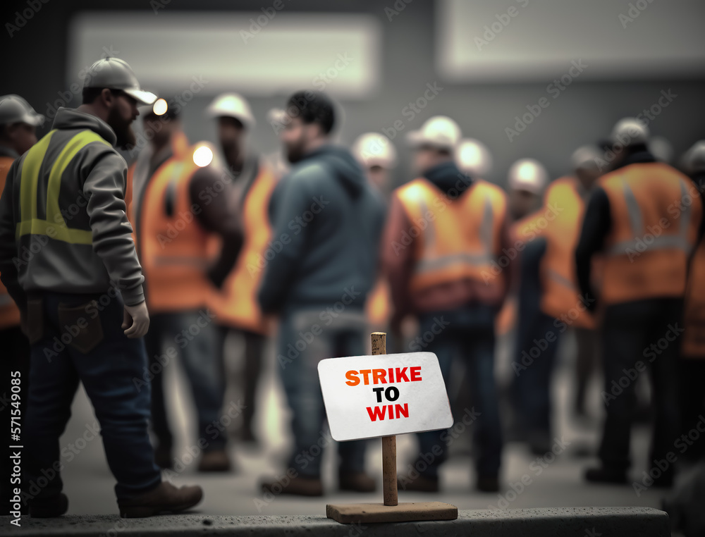Fotografia Construction workers in construction helmets on strike demonstration strike protest Jannissimo su EuroPosters Very well made.