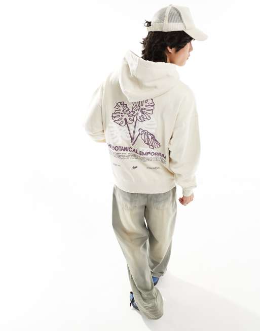 Pull Bear Hoodie met botanische print in ecru ASOS Very well made.