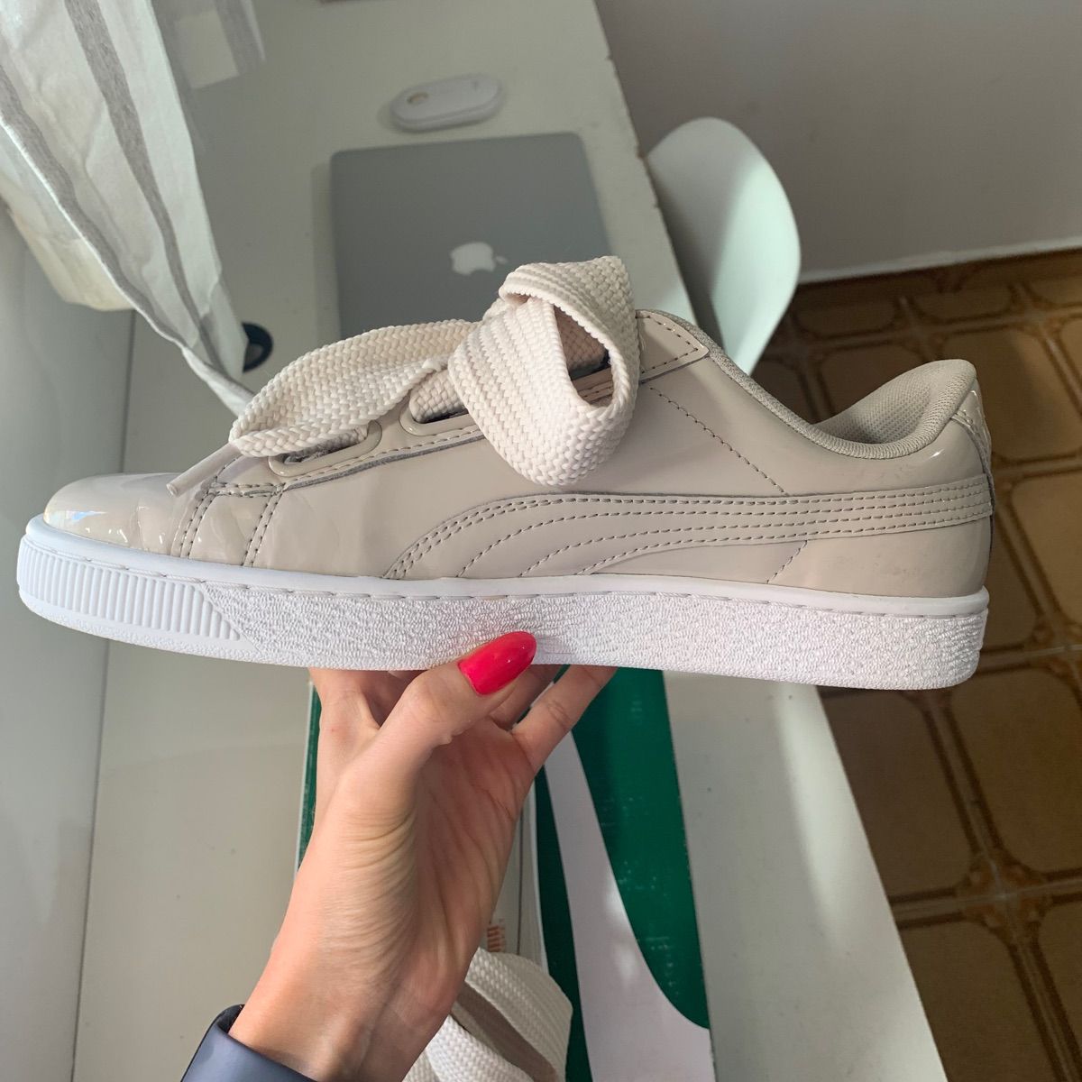 Puma Basket Heart Patent Sneaker Khaki Vinted Very well made.