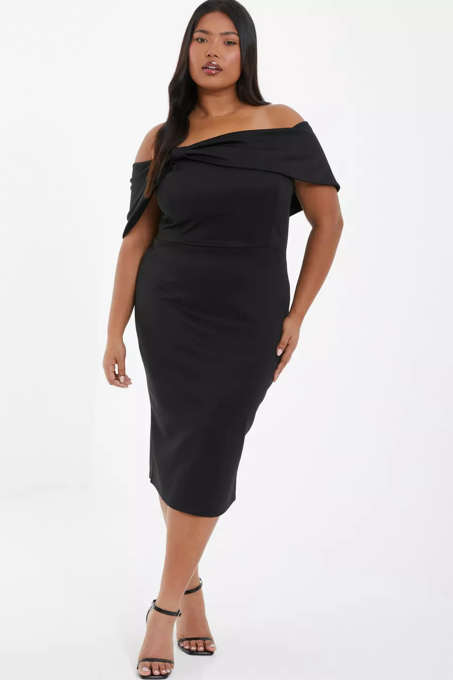 Curve Pink Ruched Bardot Midi Dress QUIZ Clothing Very well made.