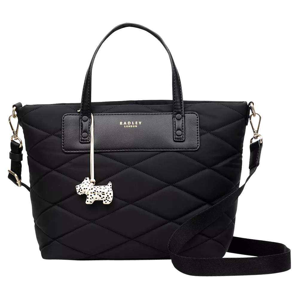 Radley Quilted Handbag Black Medium Leather Zip Top Multiway Sunny Dene Very well made.