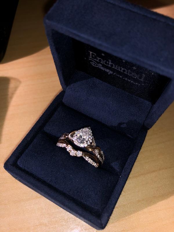 Enchanted Disney Rapunzel 3 4 CT. T.W. Pear Shaped Diamond Frame Twist Engagement Ring in 14K Two Tone Gold Size 7 Zales Very well made.