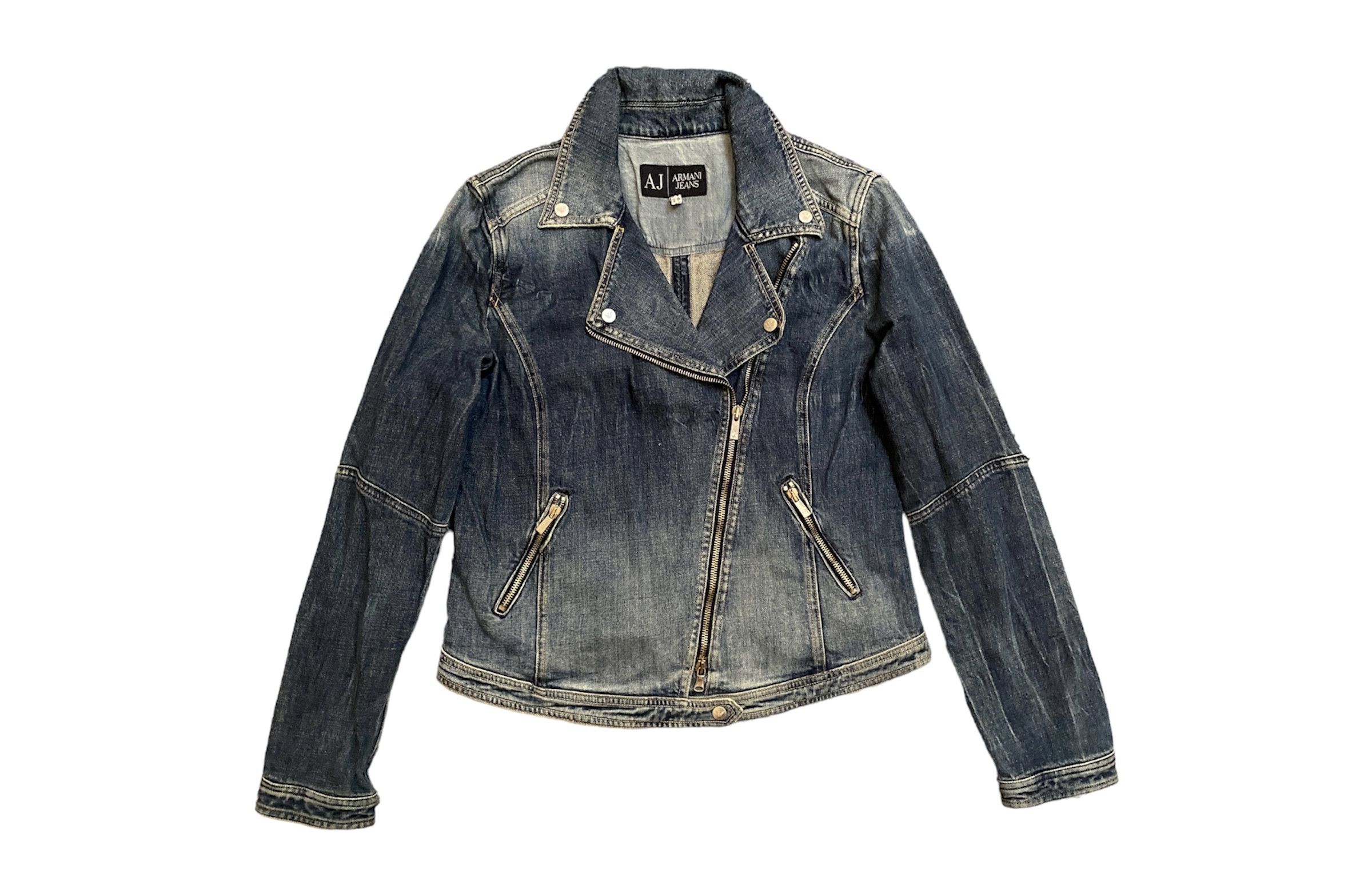 Vintage Vintage 90s Armani Distressed Denim Biker Jacket For Ladies Grailed Very well made.