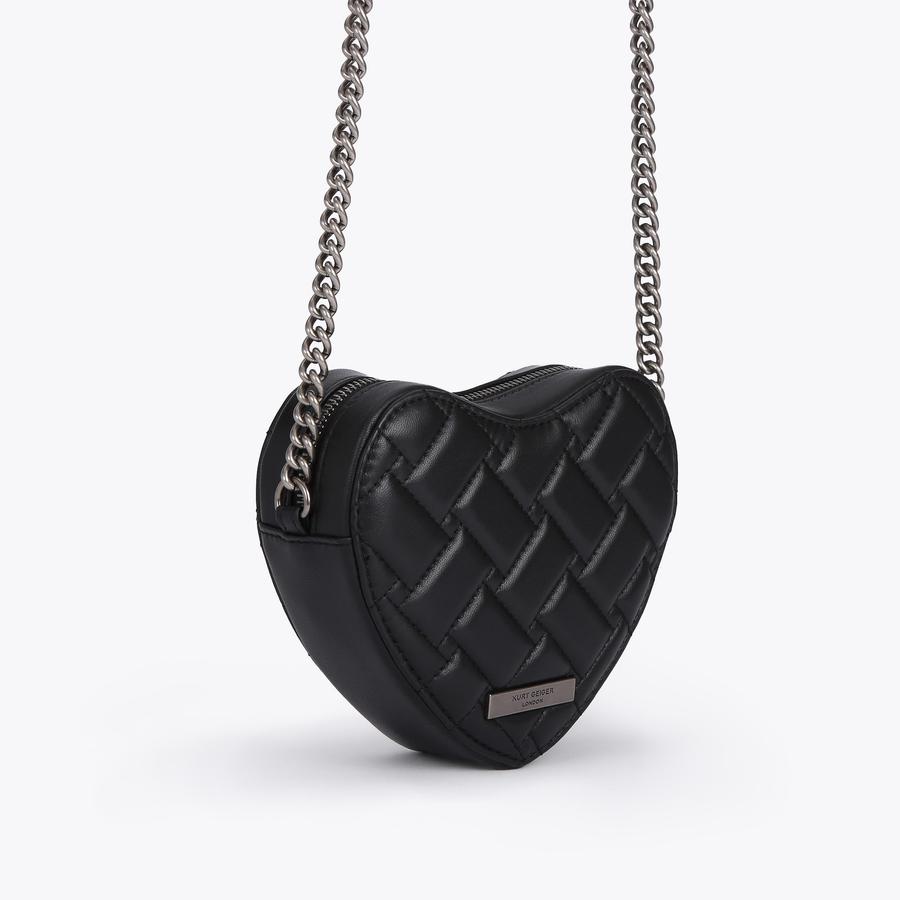 KENSINGTON HEART X BODY Black Heart Quilted Leather Cross Body Purse by KURT GEIGER LONDON Very well made.