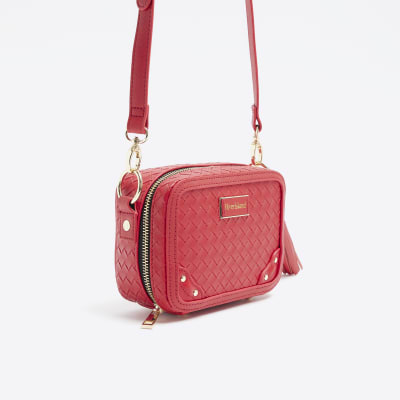 Red Weave Oval Cross Body Bag River Island Very well made.
