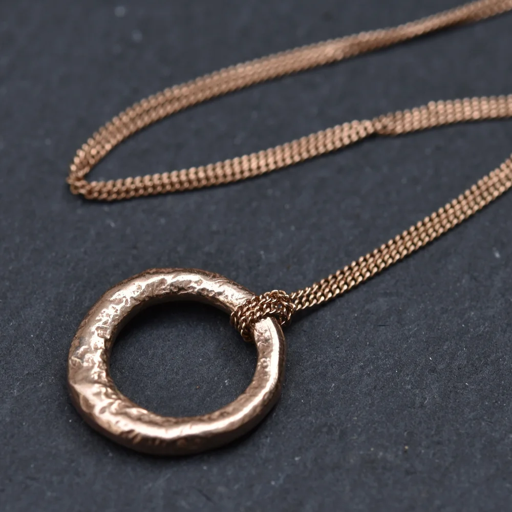 Handmade 9ct red rose gold molten circle pendant necklace by Erin Cox Jewellery. Erin Cox Very well made.