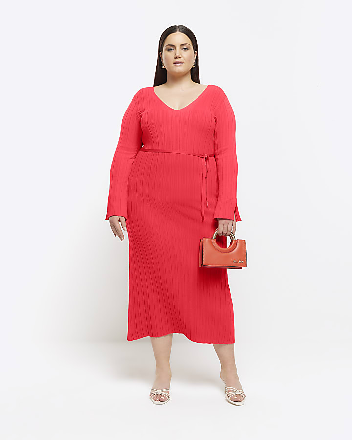 Plus red knit rib jumper maxi dress River Island Very well made.