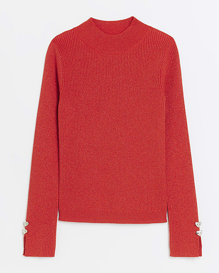 Girls Red Shimmer Rib High Neck Top River Island Very well made.