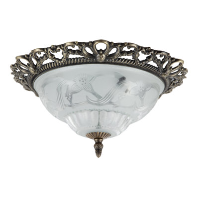 Traditional and Classic Antique Brass and Floral Glass Flush Ceiling Light Very well made.