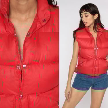 Red Puffer Vest 70s 80s Ski Vest Puffy Sleeveless Jacket Shop Exile Tucson AZ Very well made.