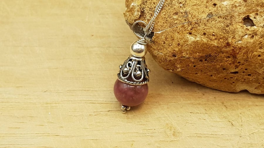 Rhodonite Pendant Crafted by Hand Very well made.