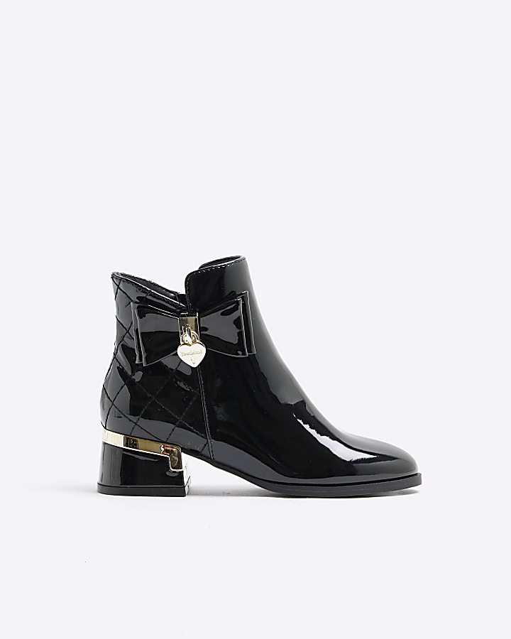 Girls Black Patent Bow Heeled Boots River Island Very well made.
