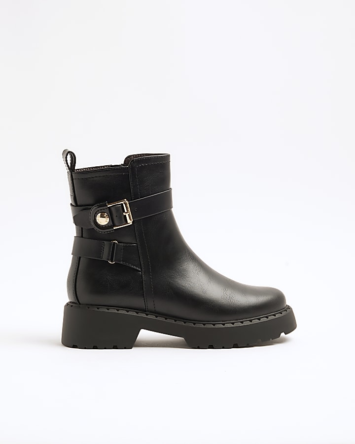 Black wide fit buckle chunky ankle boots River Island Very well made.