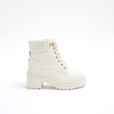 Girls Cream Heeled Hiker Lace Up Boots River Island Very well made.