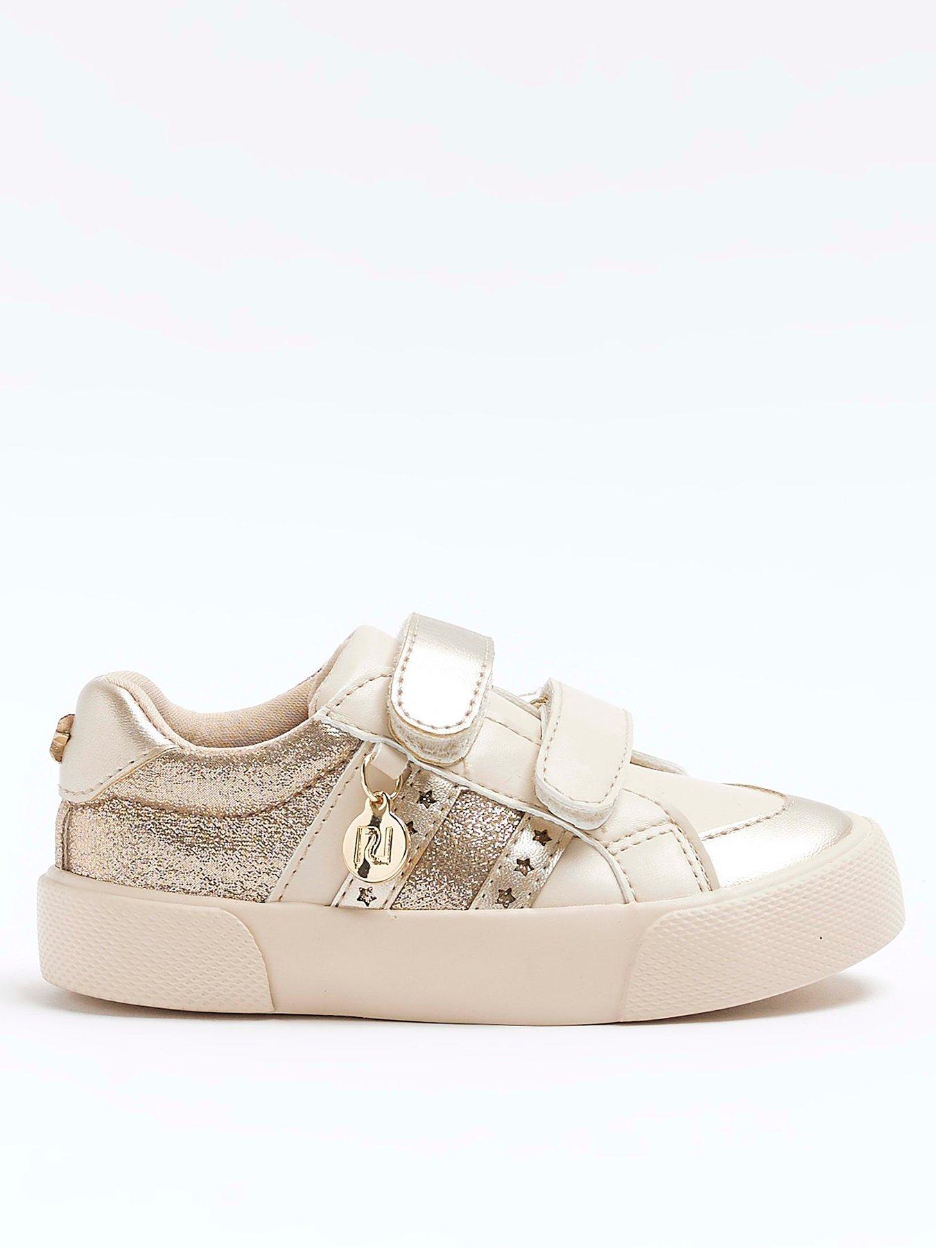 River Island Mini Mini Girl Gold Glitter Trainers Gold Very Ireland Very well made.