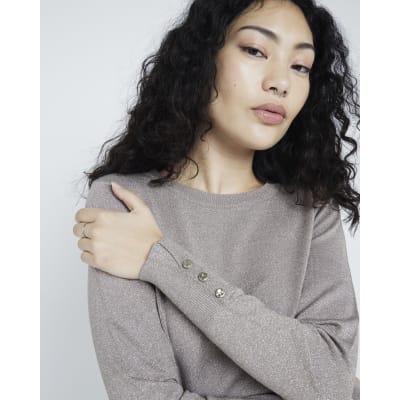 Gold Fine Knit Glitter Long Sleeve Top River Island Very well made.