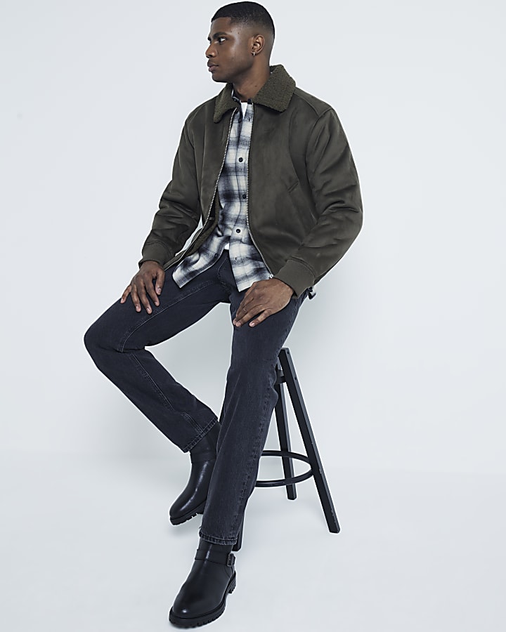 Khaki Regular fit Shearling Bomber Jacket River Island Very well made.