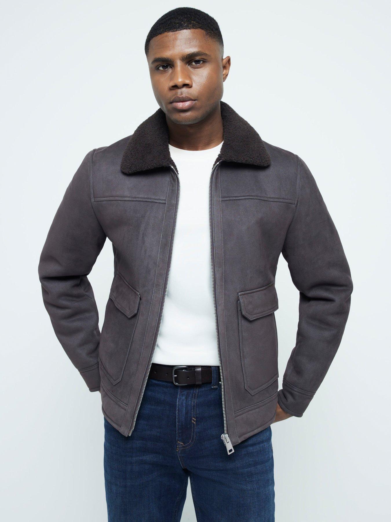 Stone regular fit shearling western jacket River Island Very well made.
