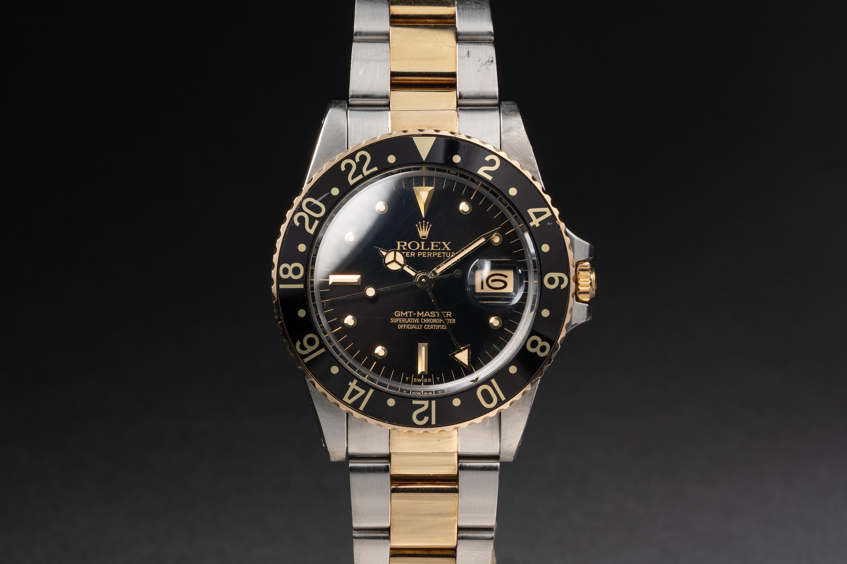 Tropical Watch 1982 Rolex Two Tone GMT Master 16753 Black Dial Very well made.