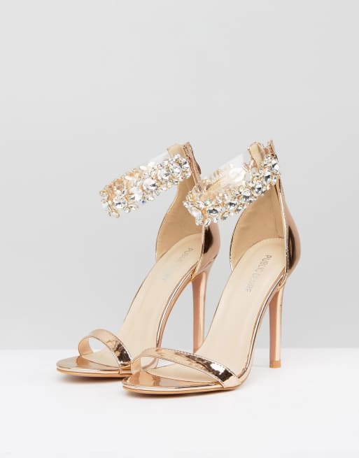 Public Desire Fiji Rose Gold Crystal Ankle Heeled Sandals ASOS Very well made.
