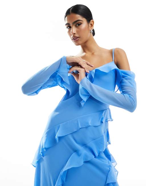 Forever New long sleeve sheer ruffle maxi dress in blue Very well made.