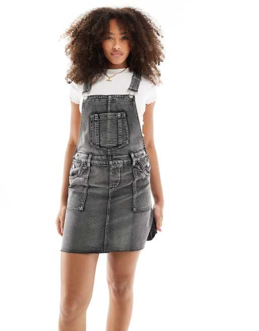 Miss Selfridge Vestito salopette di jeans lavaggio nero slavato con fondo sfrangiato ASOS Very well made.