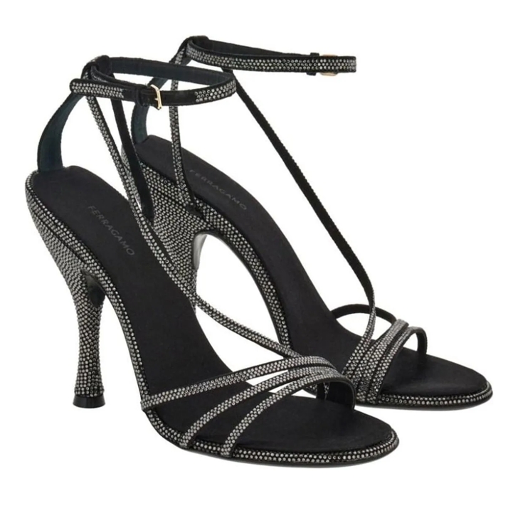 NIB NEW Salvatore Ferragamo Lampio Black silver crystal sandals slides 6 7 695 eBay Very well made.