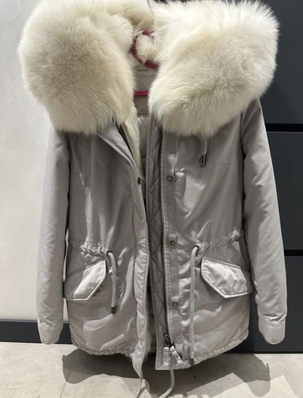 AW 2024 25 Triple White CS Fur Parka Indulge in luxury with the Canada Sansar parka handcrafted with premium materials Triple white Finland farmed Arctic white Finnraccoon fur collar for Very well made.