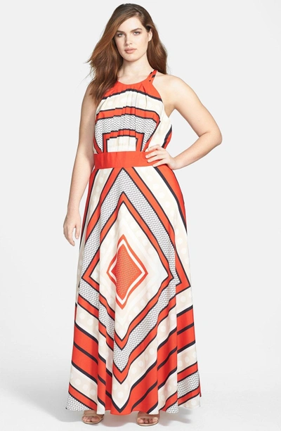 Eliza J Scarf Print Crepe De Chine Fit Flare Maxi Dress Size 2 Orange 158 Nordstrom Lookastic Very well made.