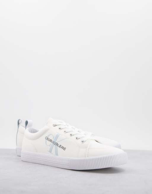 Calvin Klein Jeans monogram logo trainers in white Very well made.