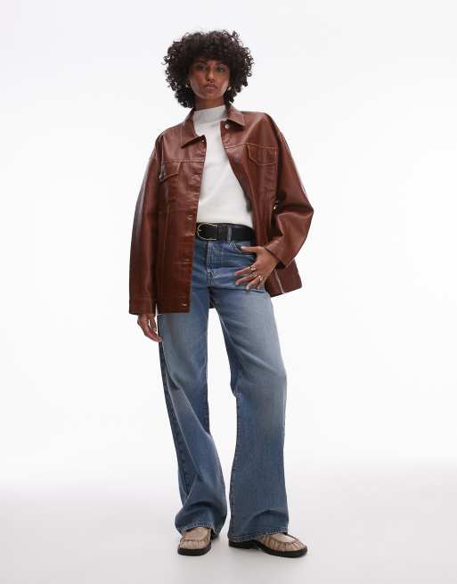 Topshop Faux Leather Shacket in rust Brown Very well made.