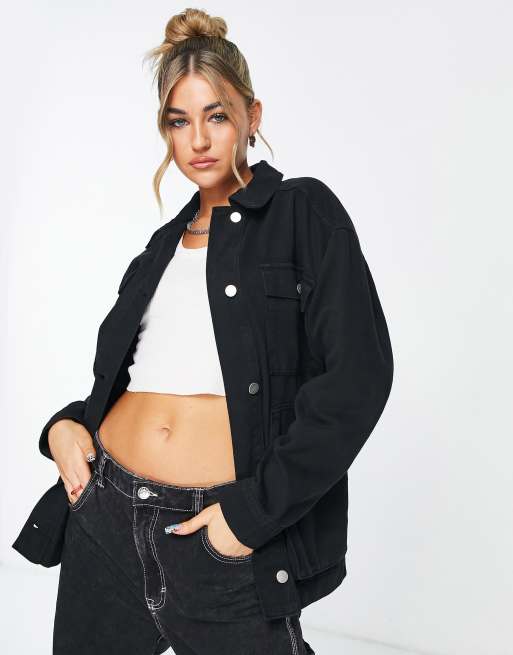 Topshop oversized utility shacket with front pockets in washed black part of a set Very well made.