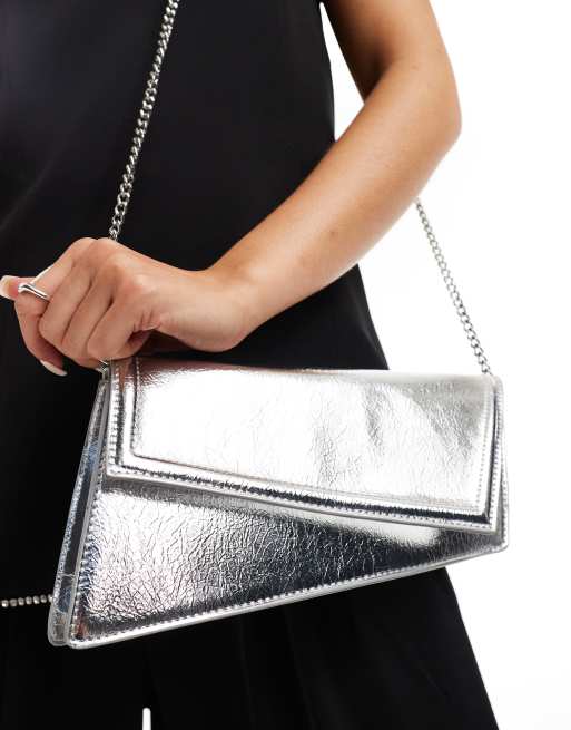 ASOS DESIGN asymmetric clutch bag with chain strap in silver ASOS Very well made.