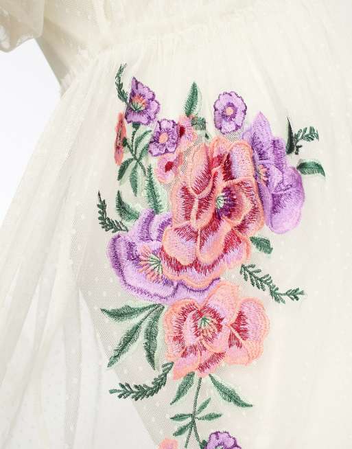 ASOS DESIGN Curve embroidered short sleeve midi dress with dobby mesh in ivory Very well made.